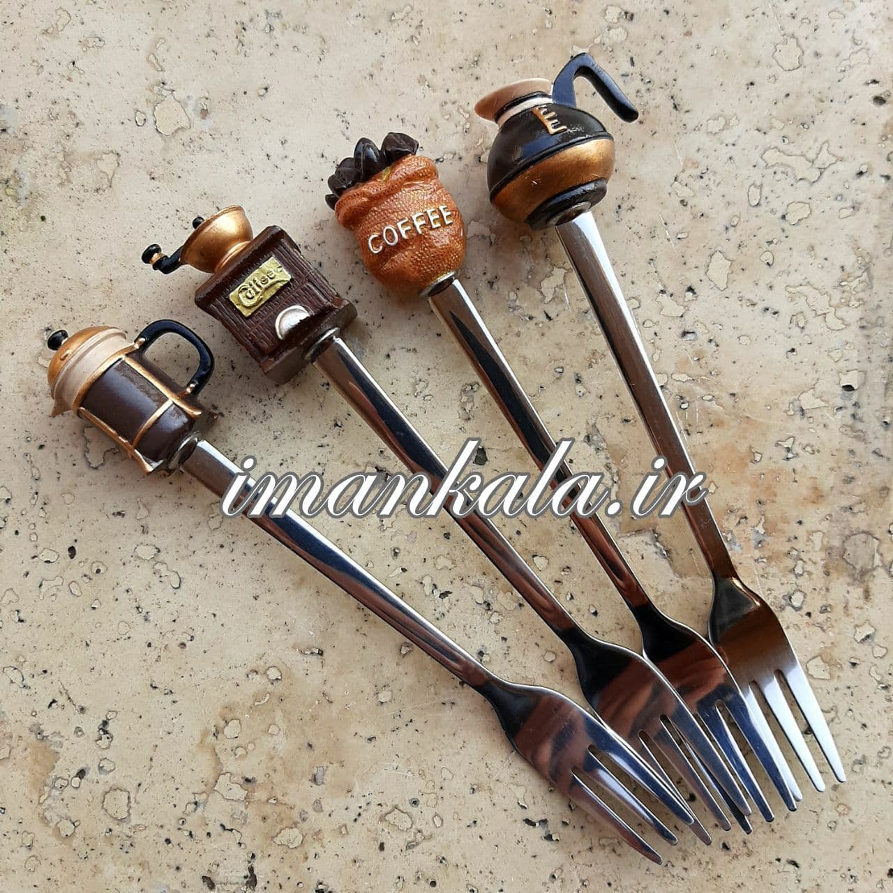1 دیدگاه برای قاشق چنگال دسر استیل دسته سرامیکی طرح قوری قهوه جوش قهوه ساب ۴ تایی