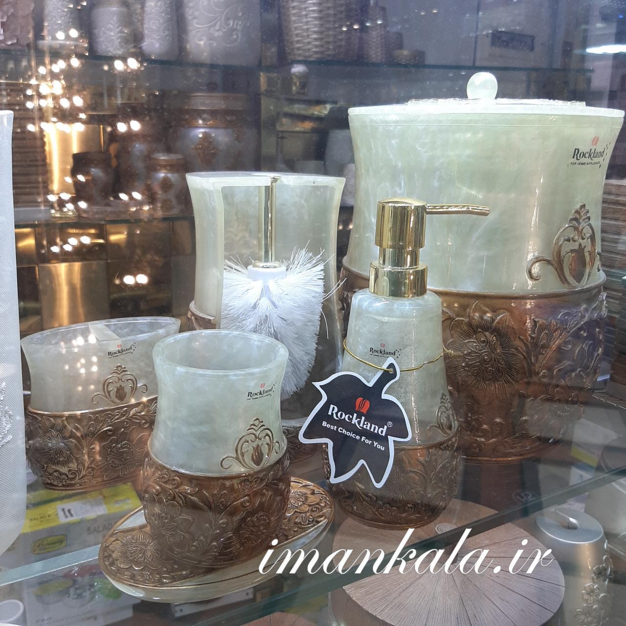 rasool مجموعه سرویس بهداشتی رزین سطل جای مسواک صابون مایع دست