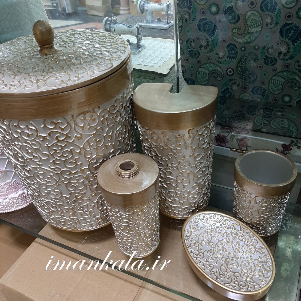 rasool مجموعه سرویس بهداشتی رزین سطل جای مسواک صابون مایع دست