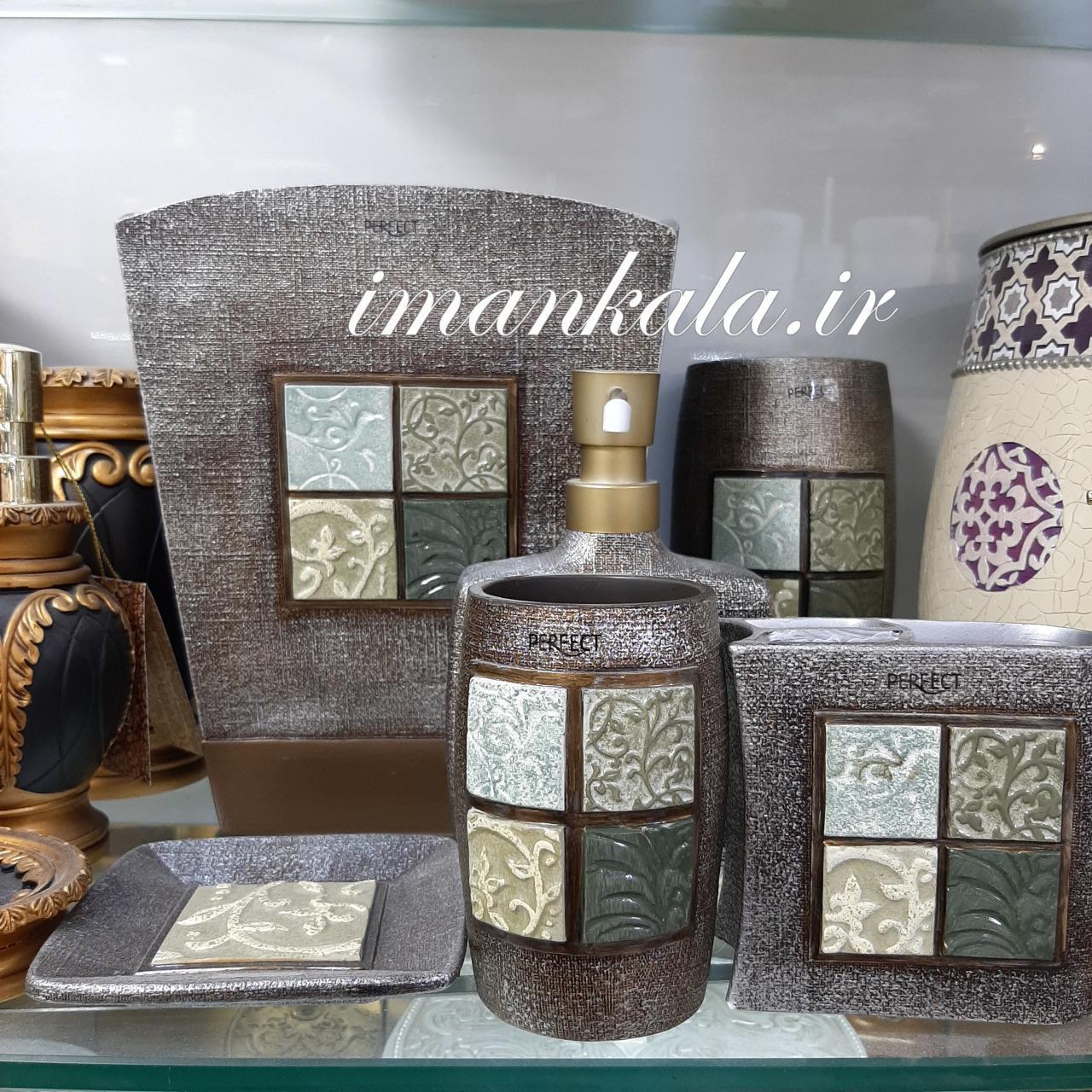 rasool مجموعه سرویس بهداشتی رزین سطل جای مسواک صابون مایع دست