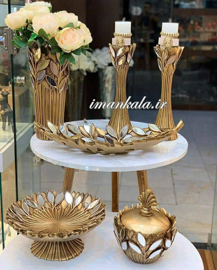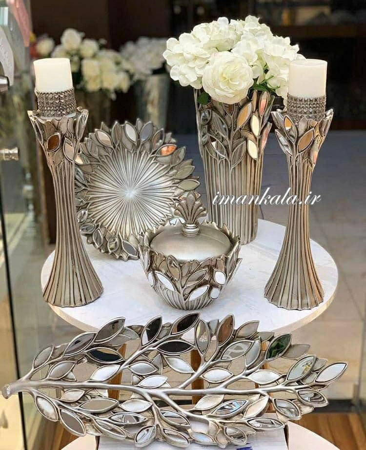 مجموعه سرویس پذیرایی رزین و آینه شاخه برگ
