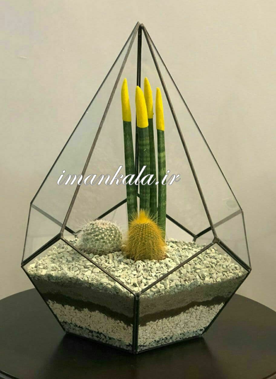 گلدان تراریوم چند وجهی برنج آبکاری شده بلور