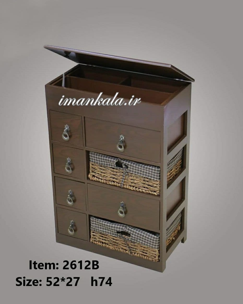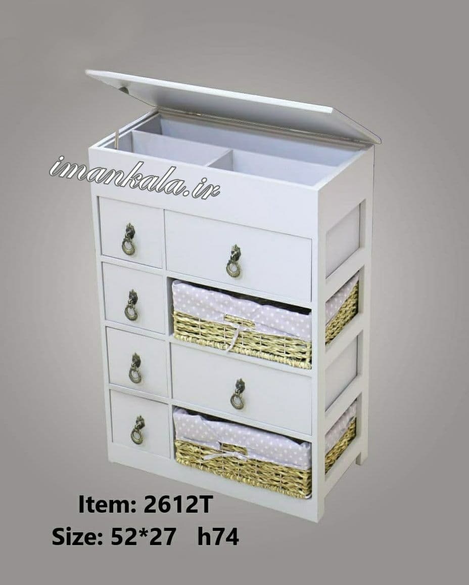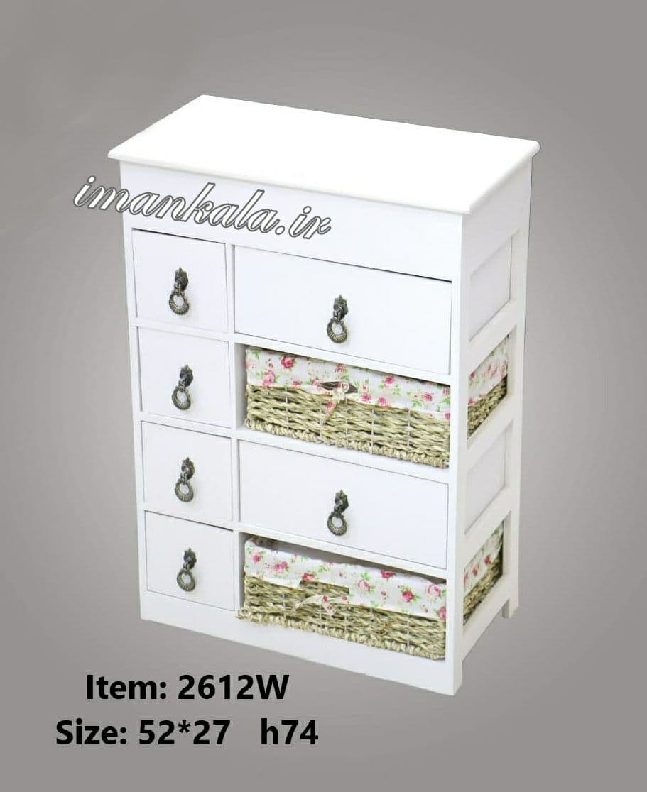 ❤️ فایل دراور ۶ کشو چوبی ۲ سبد حصیری جای لوازم سیب زمینی پیاز جای قاشق چنگال h 74x52x27 cm cod 2612