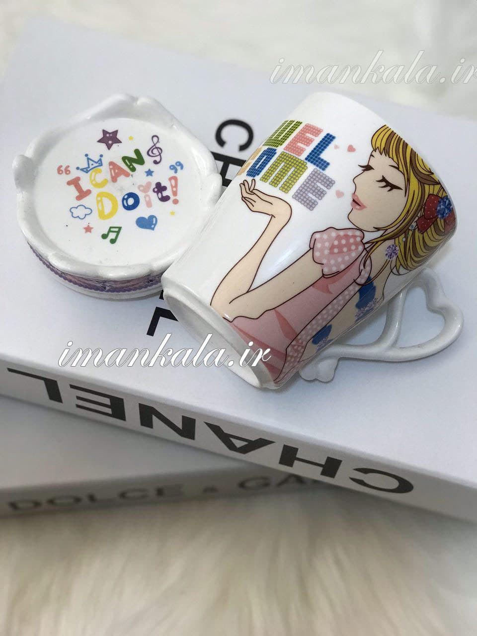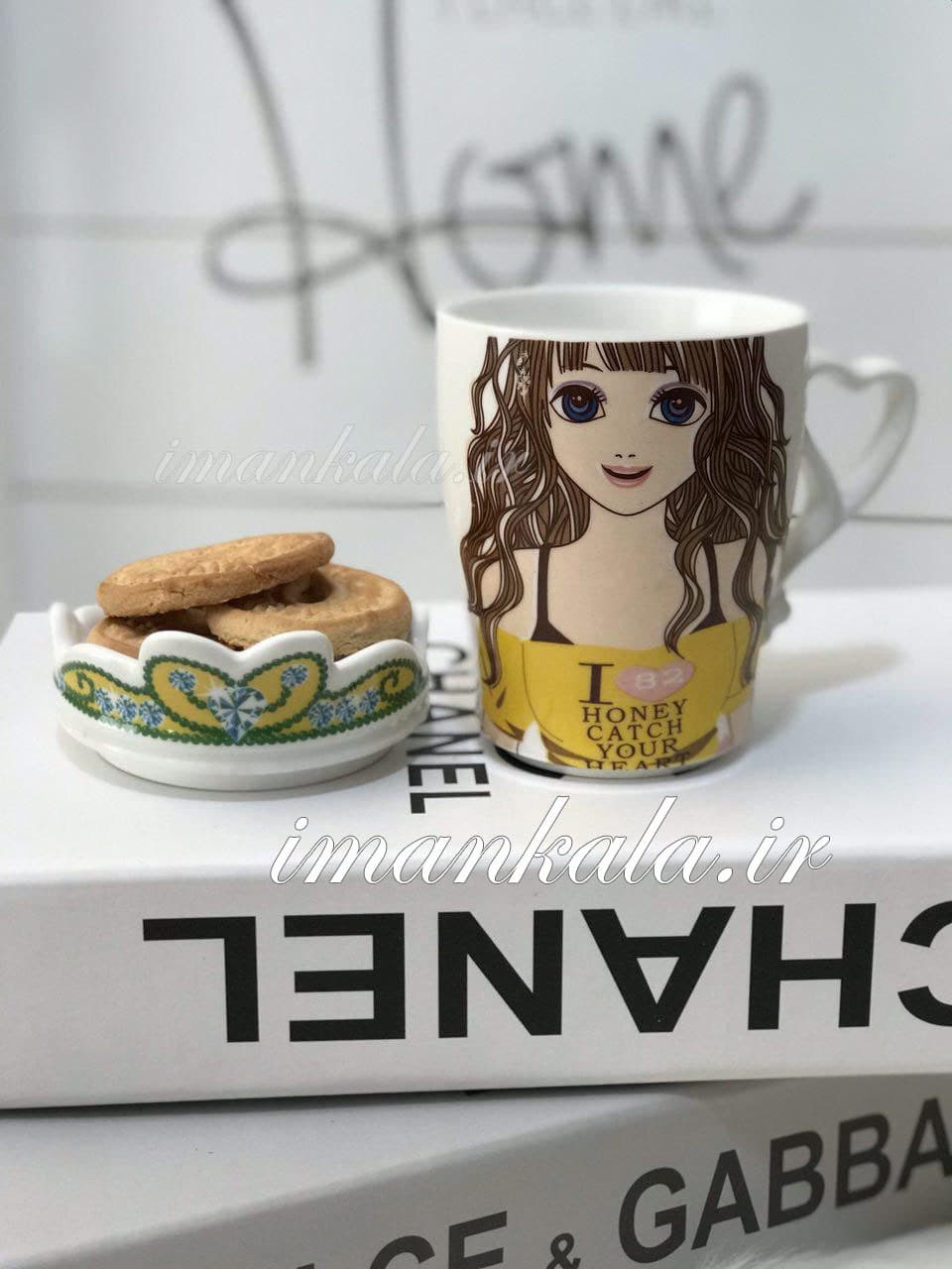 ❤️ ماگ لیوان دختر دستگیره قلب درب تاج تک