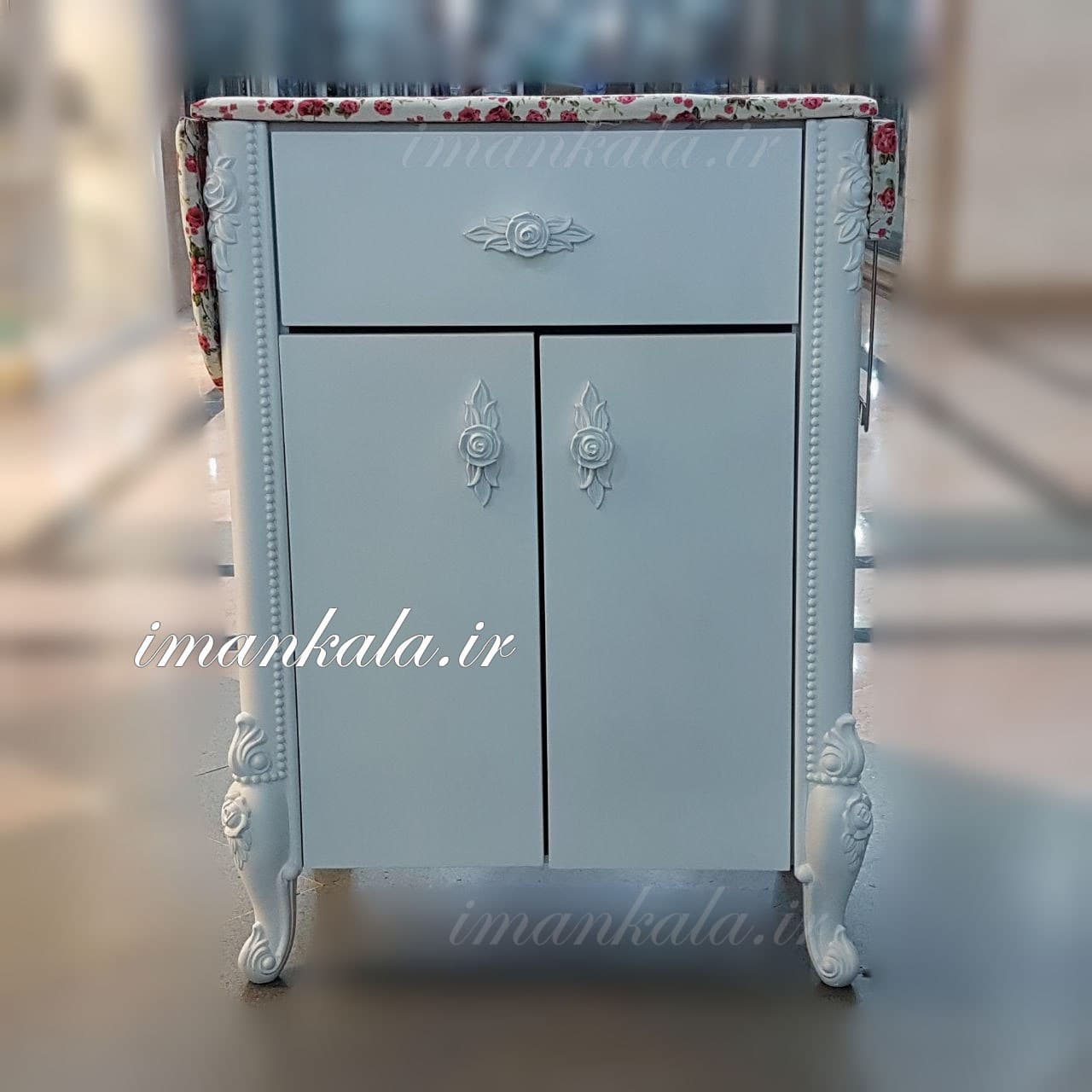 میز اتو فایل دراور کشو کمد چوبی جای لوازم لباس پارچه گل دار