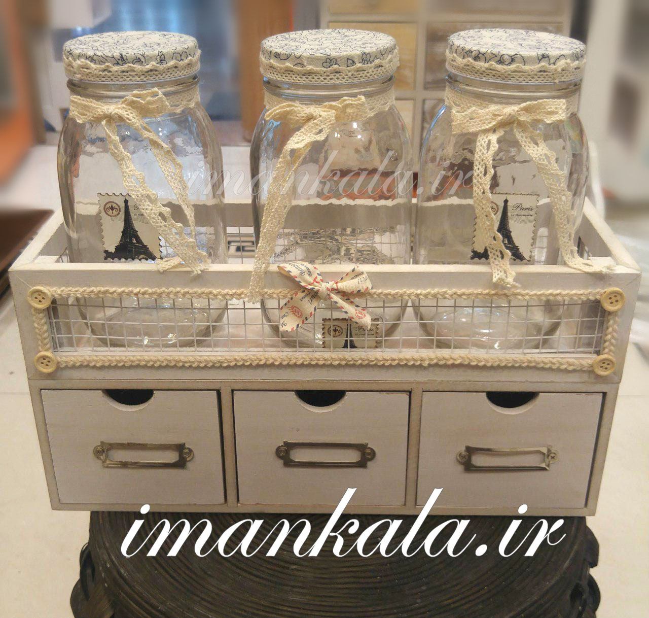 14953 بانکه پاسماوری 3 تایی و استند پایه چوبی 3 کشو