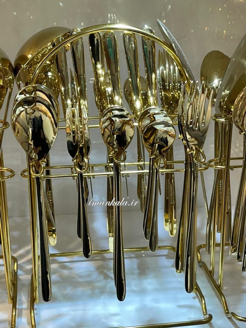 👈 ۱۲ قاشق ۱۲ چنگال ۶ کارد ۶ چنگال ۶ قاشق مربا ۶ قاشق شربت یک کفگیر یک ملاقه یک پایه یا استند