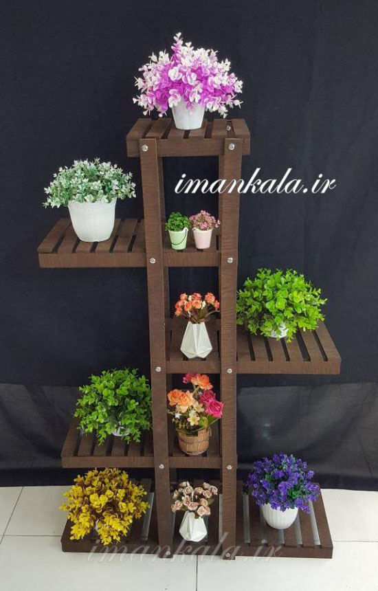 mdf استند پایه نردبان تزئینی چوبی ام دی اف قهوه ای ۵ طبقه ۳ ستون جای گل گلدان لوازم